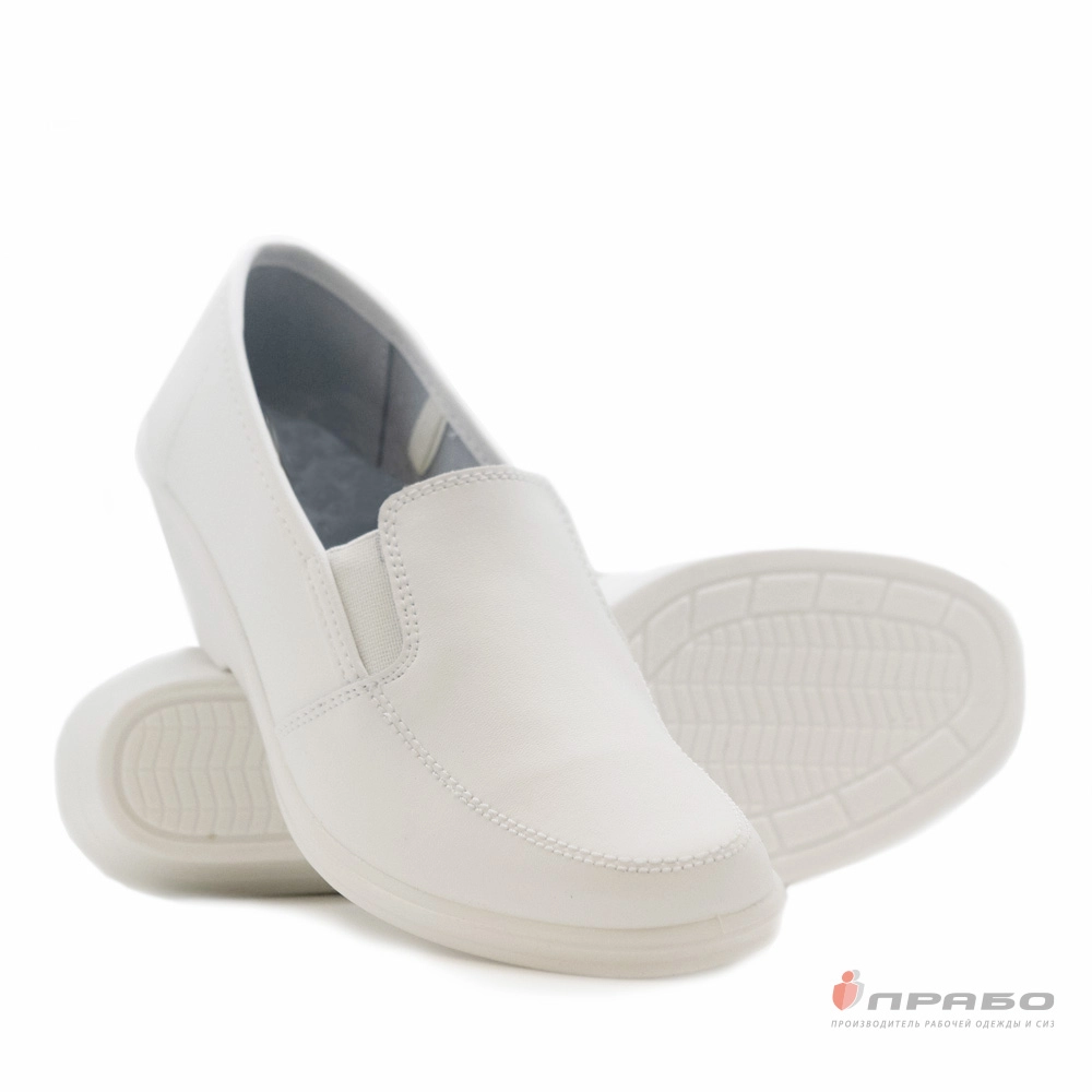 Туфли кожаные закрытые женские с подошвой ПВХ белые (натуральная кожа)