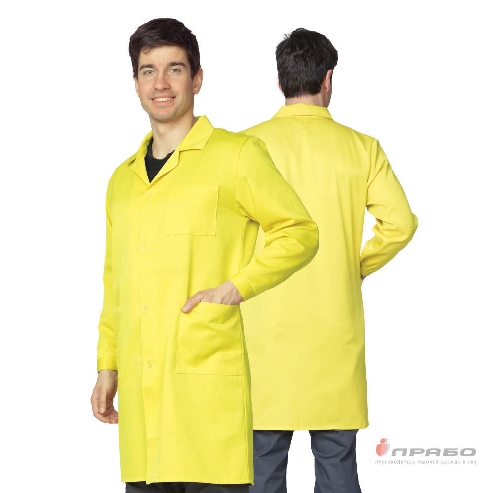 Халат рабочий мужской «Технолог» средней длины выполнен в классическом стиле и имеет прямой свободный крой, который дарит комфорт и не стесняет движений. Рабочий халат желтого цвета является недорогой формой спецодежды, соответствует требованиям производственной гигиены.