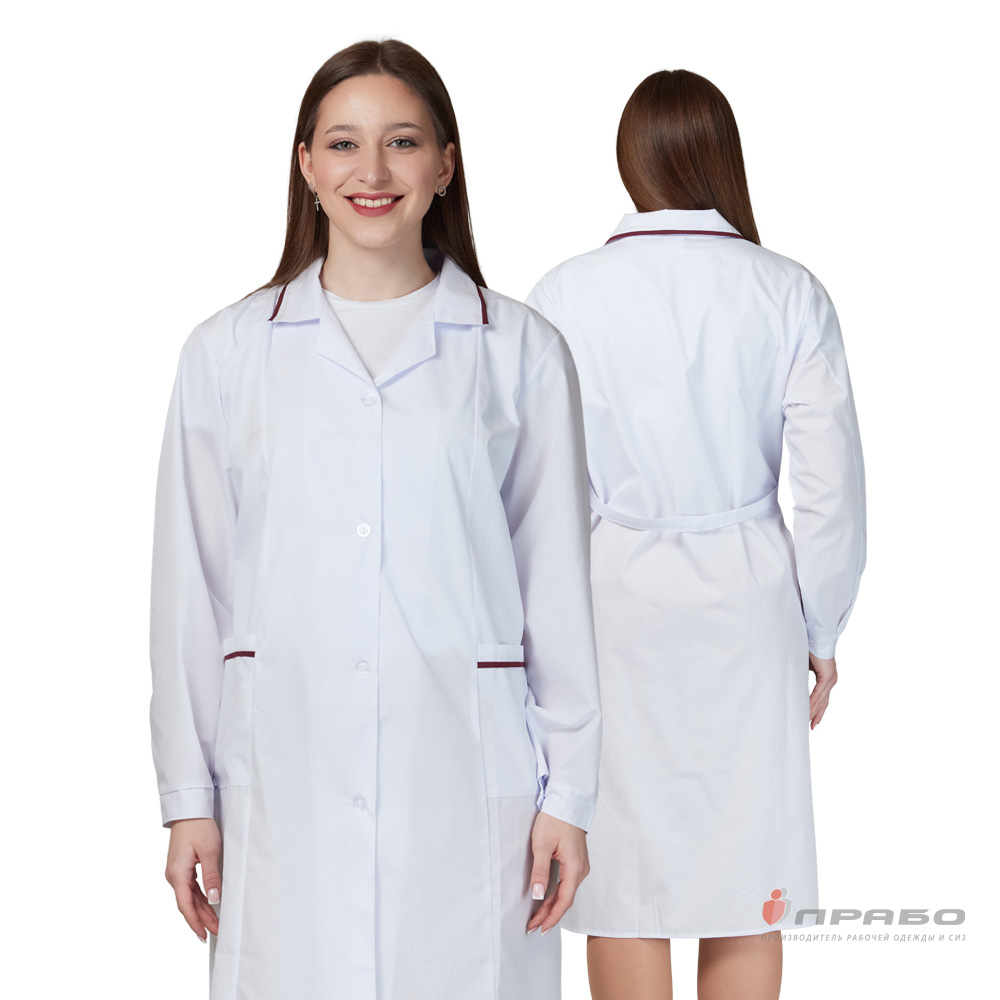 Халат женский (ТиСи) белый с отделкой бордо