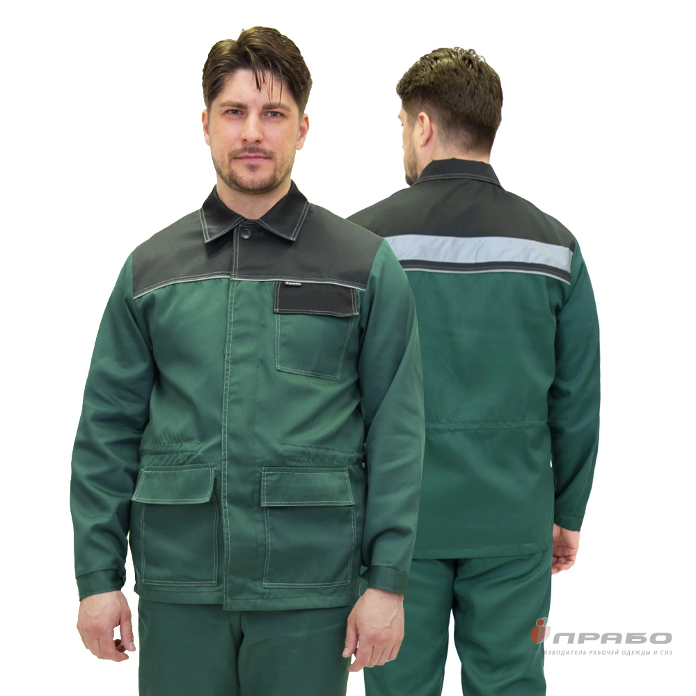Костюм мужской "Ударник П" тёмно-зелёный/чёрный (куртка и брюки)