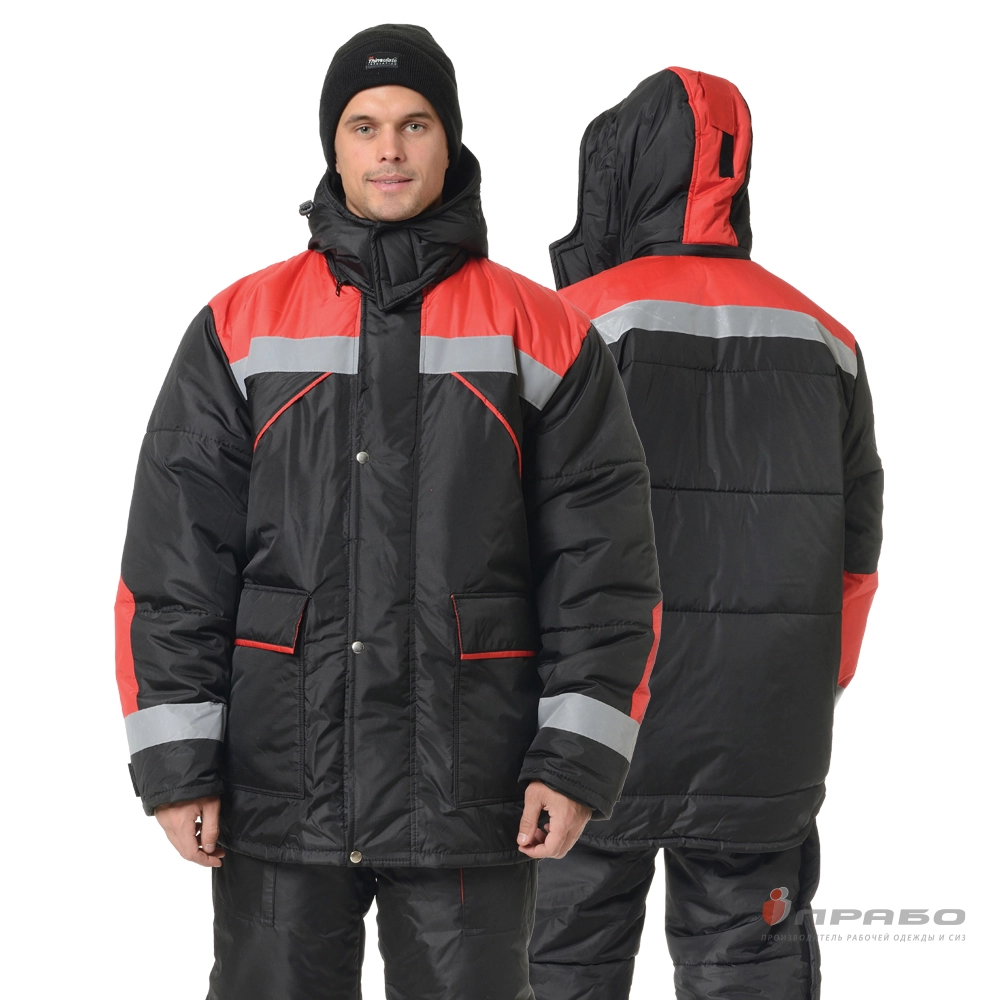 Костюм мужской утеплённый "Эверест" чёрный/красный (куртка и полукомбинезон)