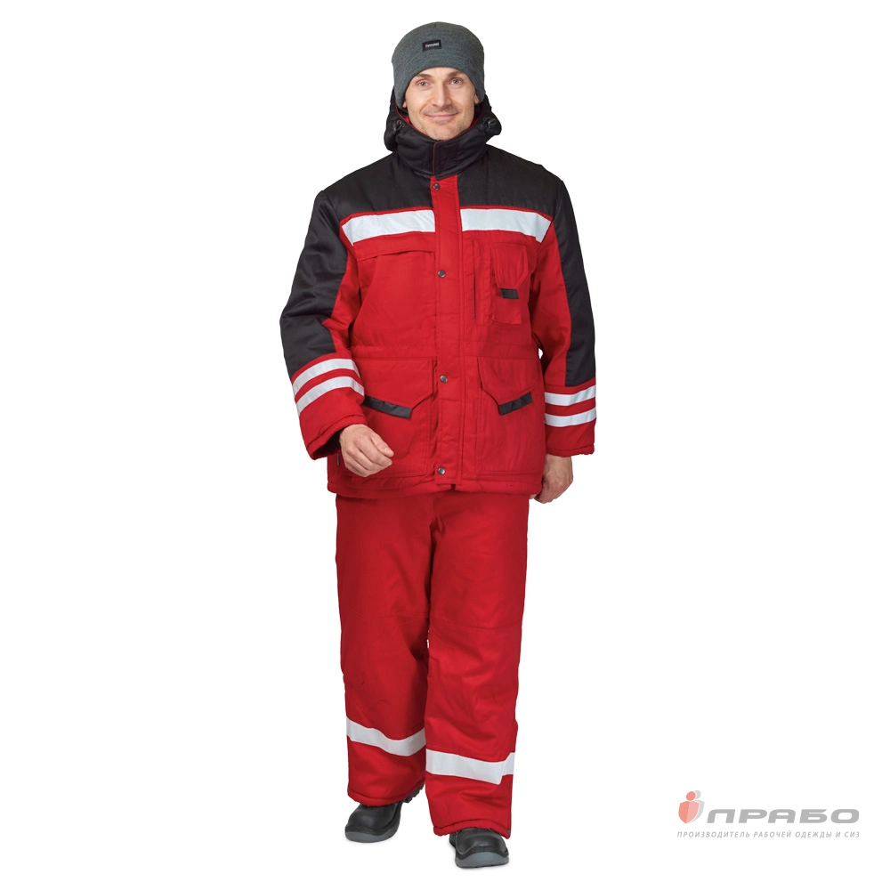 Костюм мужской утёпленный "Зима" красный/черный (куртка и брюки)