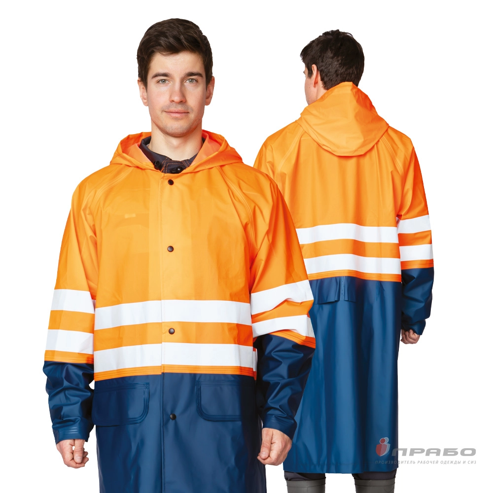 Плащ влагозащитный сигнальный флуоресцентный оранжевый/тёмно-синий