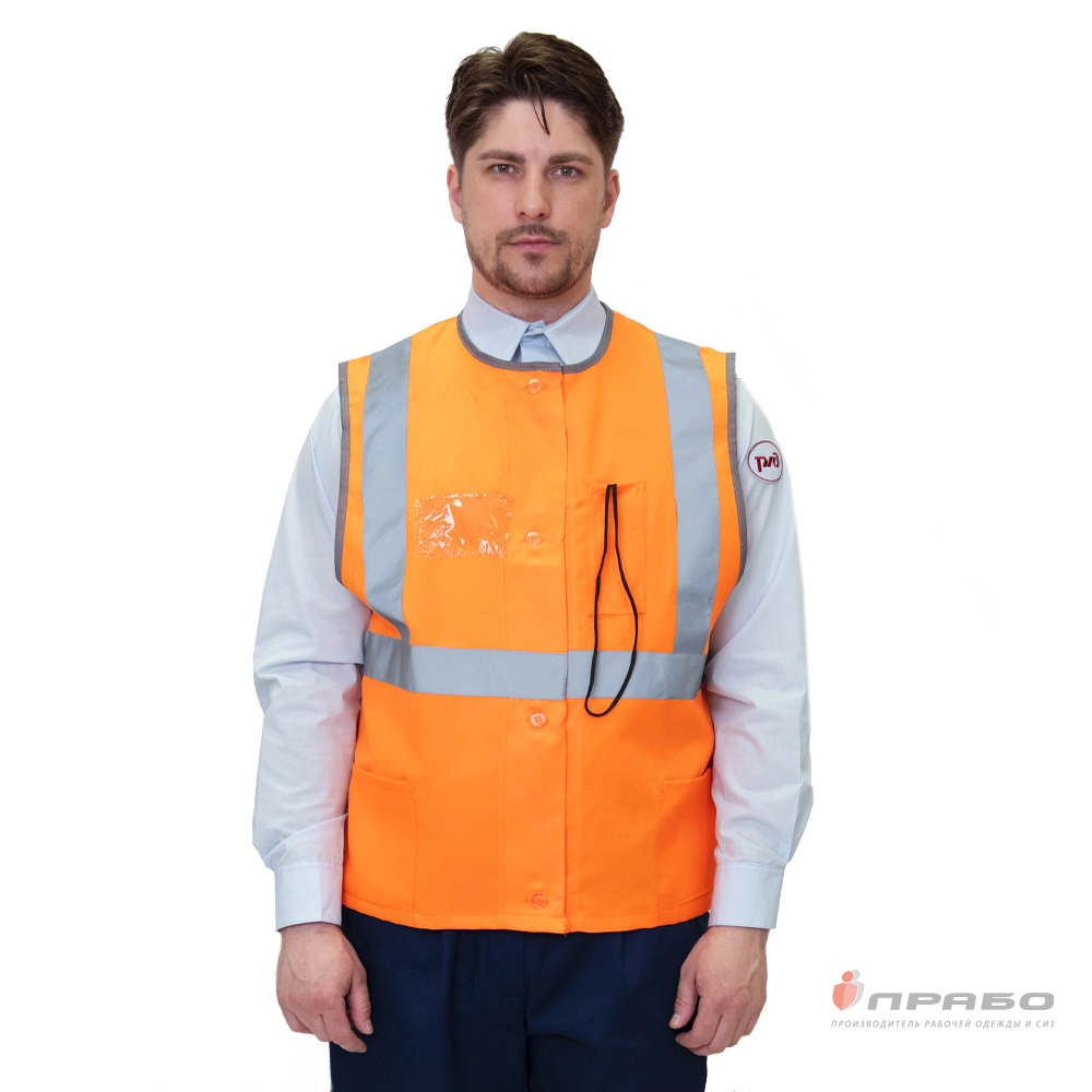 Жилет сигнальный "РЖД" тип В оранжевый сигнальный всесезонный