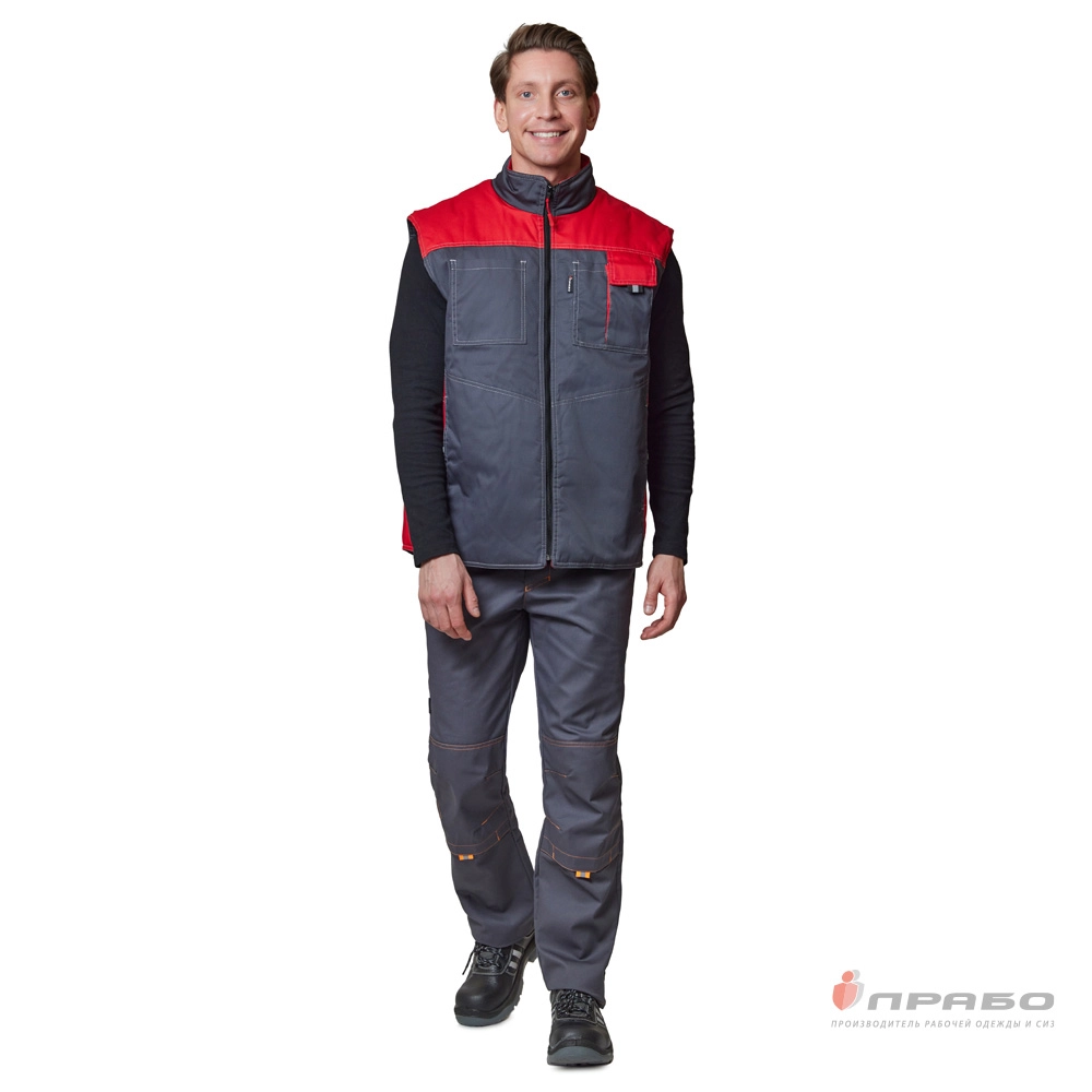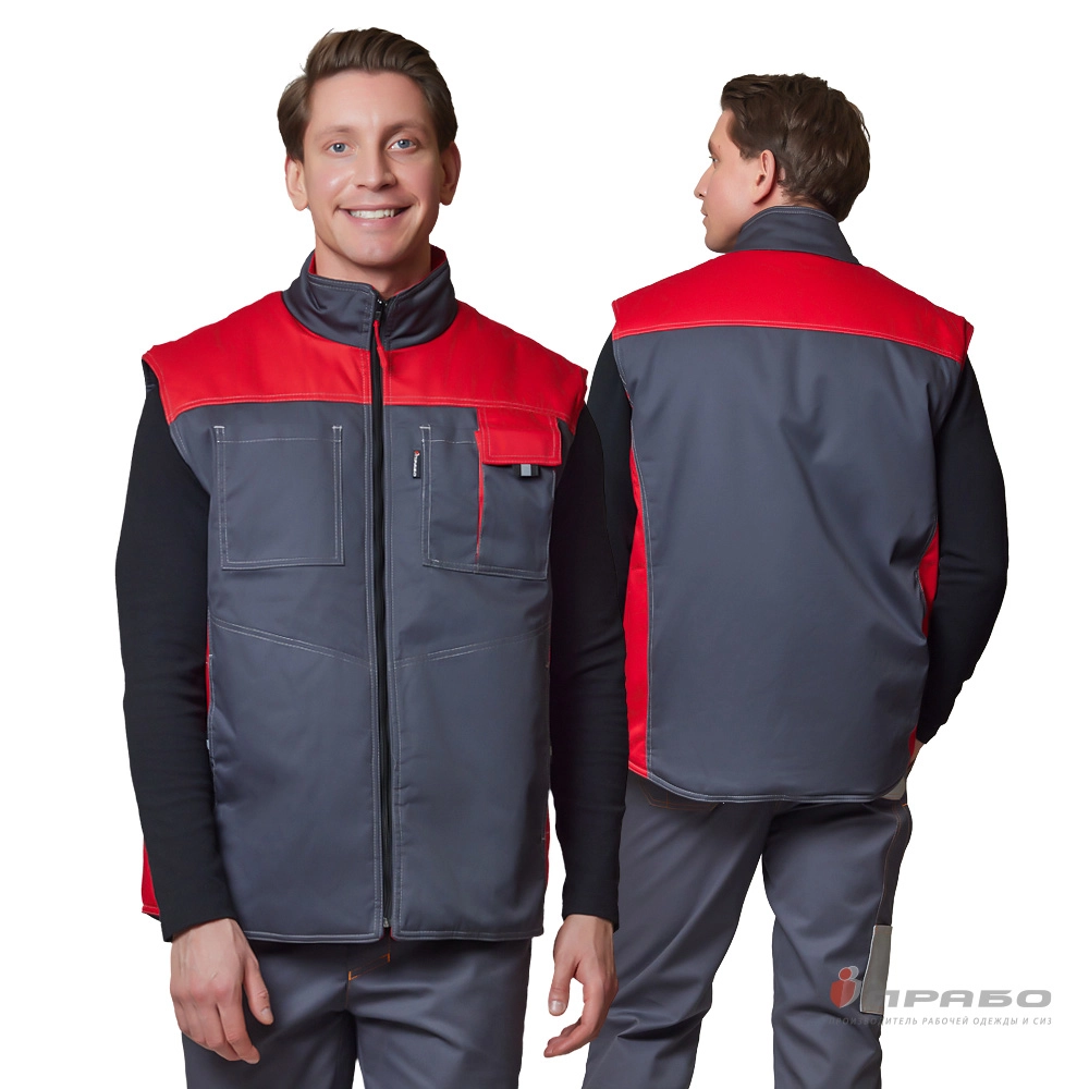 Жилет утеплённый "Бренд" тёмно-серый/красный без канта
