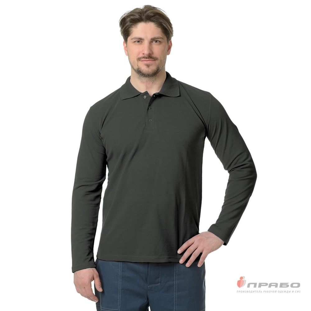 Рубашка "Поло" с длинным рукавом тёмно-серая