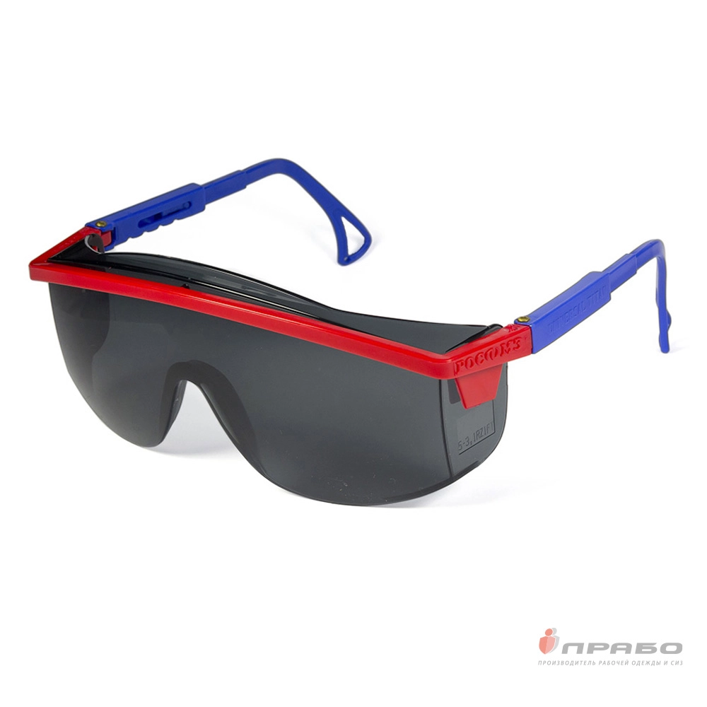 Универсальные очки с регулировкой угла наклона защитного стекла и длины заушников. Увеличенная боковая защита и защита сверху.