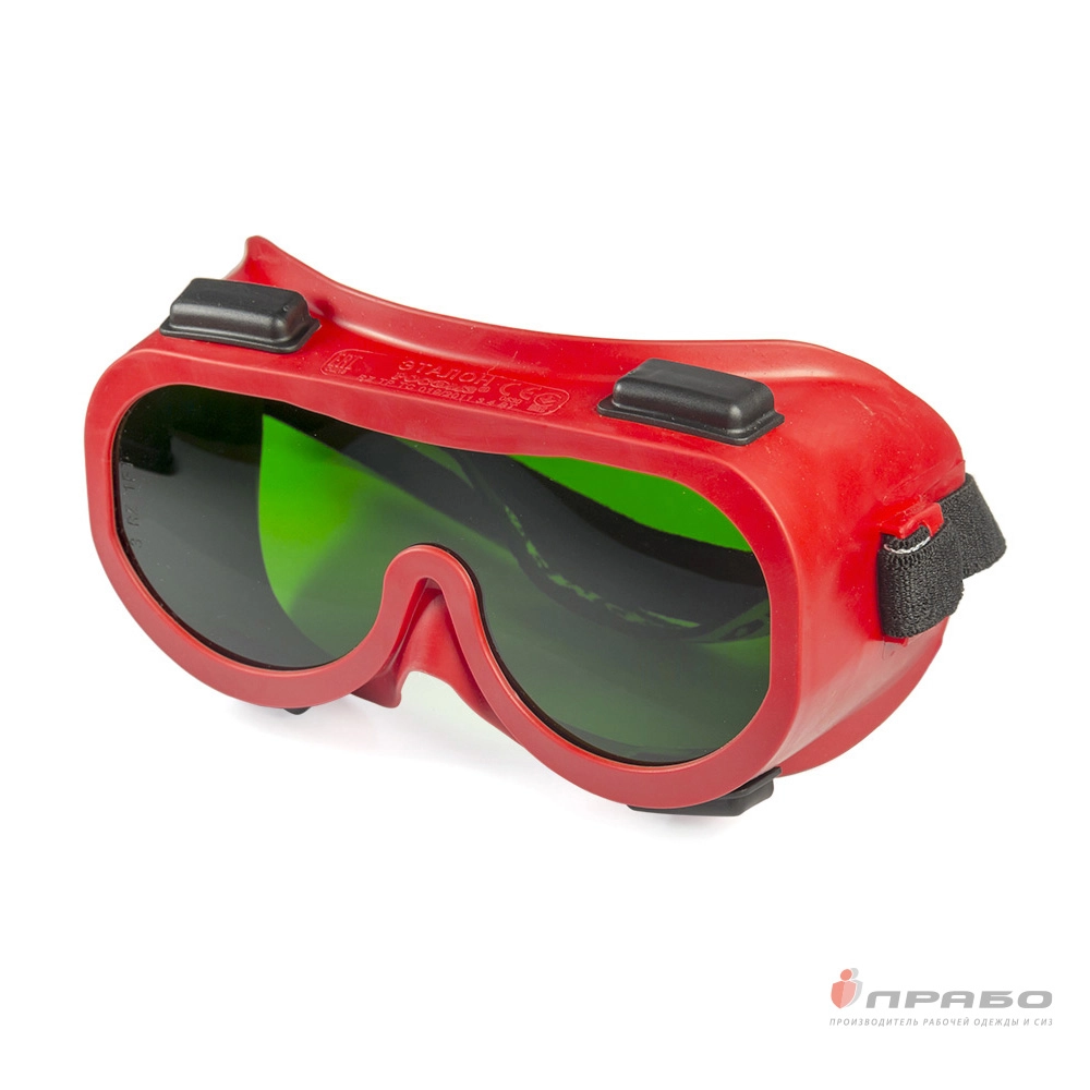 Лёгкие очки с непрямой вентиляцией в мягком корпусе из эластичного материала Evoprene и регулируемой наголовной лентой с защитным стеклом-светофильтром зелёного цвета из ацетата целлюлозы (СА) с твердым покрытием на наружной поверхности и незапотевающим покрытием на внутренней стороне, устойчивым к царапанию и истиранию, обладающим самополирующимся эффектом, антистатичностью, обеспечивающим защиту от механического повреждения высокоскоростными летящими частицами со среднеэнергетическим ударом, капель жидкостей и оптического излучения.