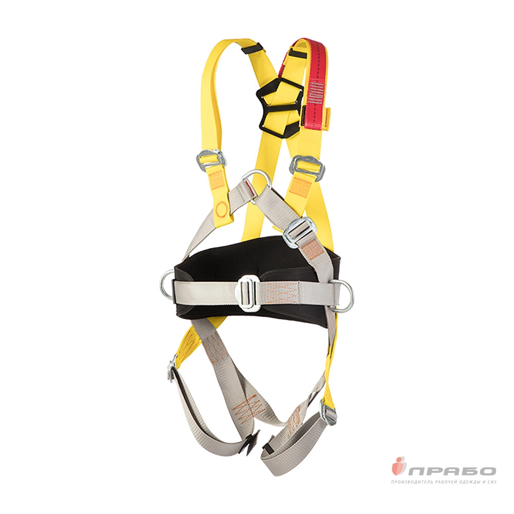 Широкий кушак имеет 2 точки крепления по бокам для присоединения стропов для удержания и позиционирования. Конструкция имеет индикатор рывка. Петли для развески оборудования расположены на поясе. Привязь выполнена из лент со световозвращающей нитью. Предусмотрено цветовое распределение лент для удобства надевания привязи. Предназначена для пользователей, масса которых вместе с индивидуальным оборудованием не превышает 100 кг.