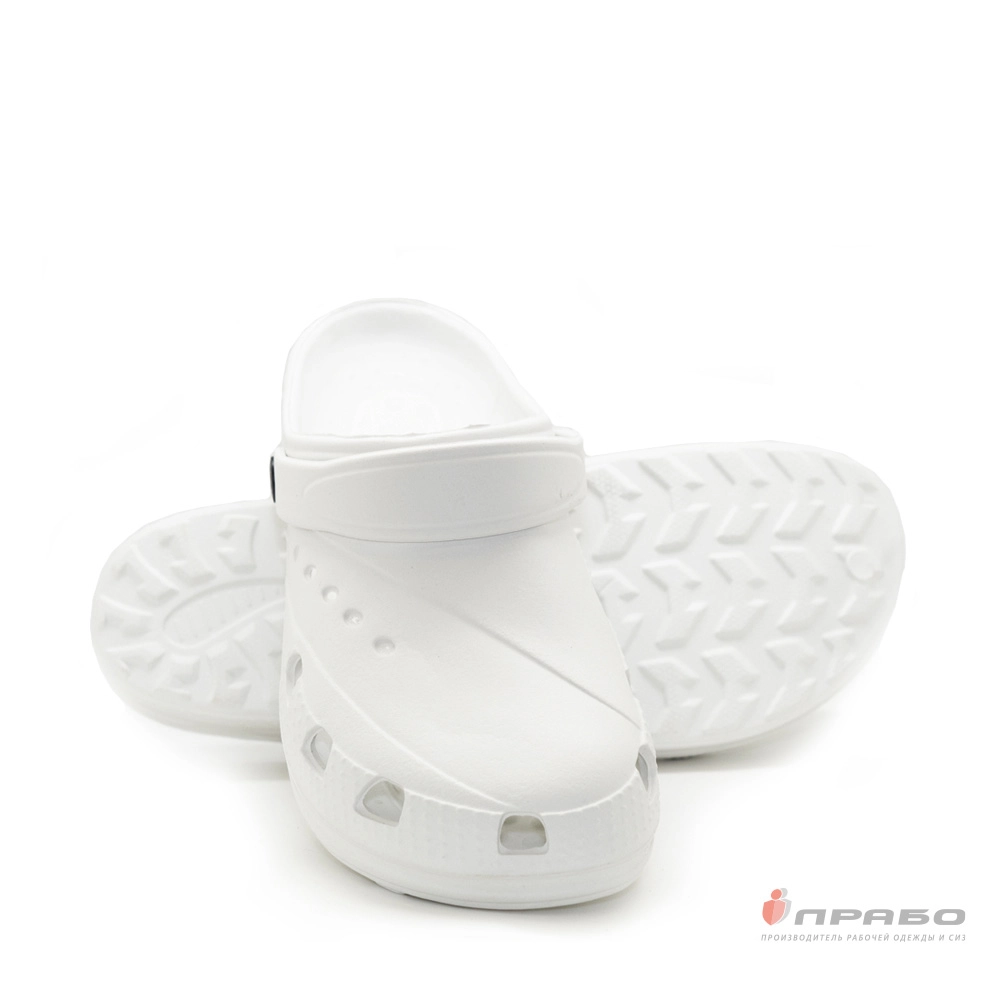 Сабо мужские из ЭВА с ремешком «Дюна 601/02М» – легкие цельнолитые сабо белого цвета, обладающие износоустойчивостью, упругостью, амортизацией и эластичностью.