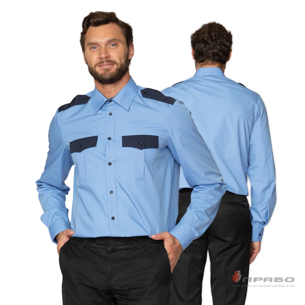 Рубашка охранника с длинными рукавами голубая/тёмно-синяя