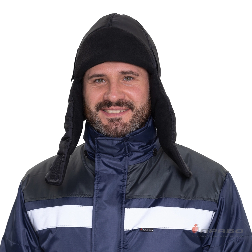 Шапка-ушанка из ткани с водоотталкивающей пропиткой с отделкой из искусственного меха рекомендуется как дополнение к утеплённому рабочему костюму или для повседневного использования.