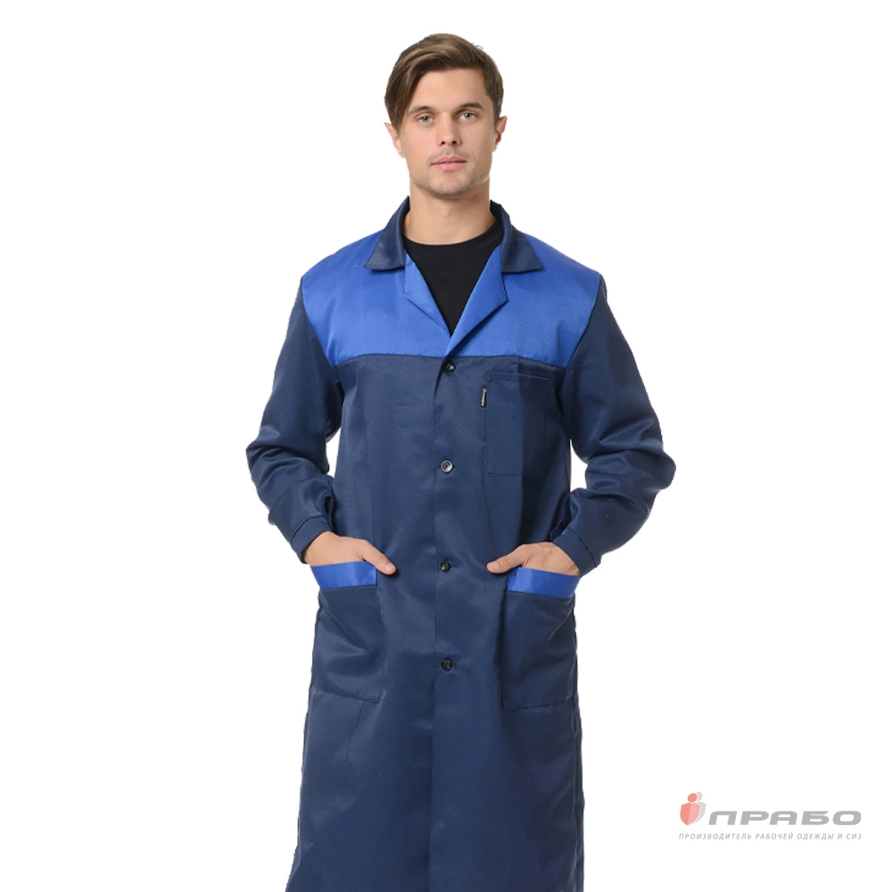 Халат рабочий мужской "Технолог" средней длины выполнен в классическом стиле и имеет прямой свободный крой, который дарит комфорт и не стесняет движений, обладает хорошей износоустойчивостью и держит форму. Изделие изготовлено из плотной смесовой ткани, в которой преобладает полиэфир и содержится 30% хлопка. Ткань пропускает воздух, впитывает влагу и быстро сохнет, а также имеет устойчивость к химическому и биологическому воздействию. Ткань не требует деликатного ухода и подходит для стирки в стиральной машине при обычном режиме.