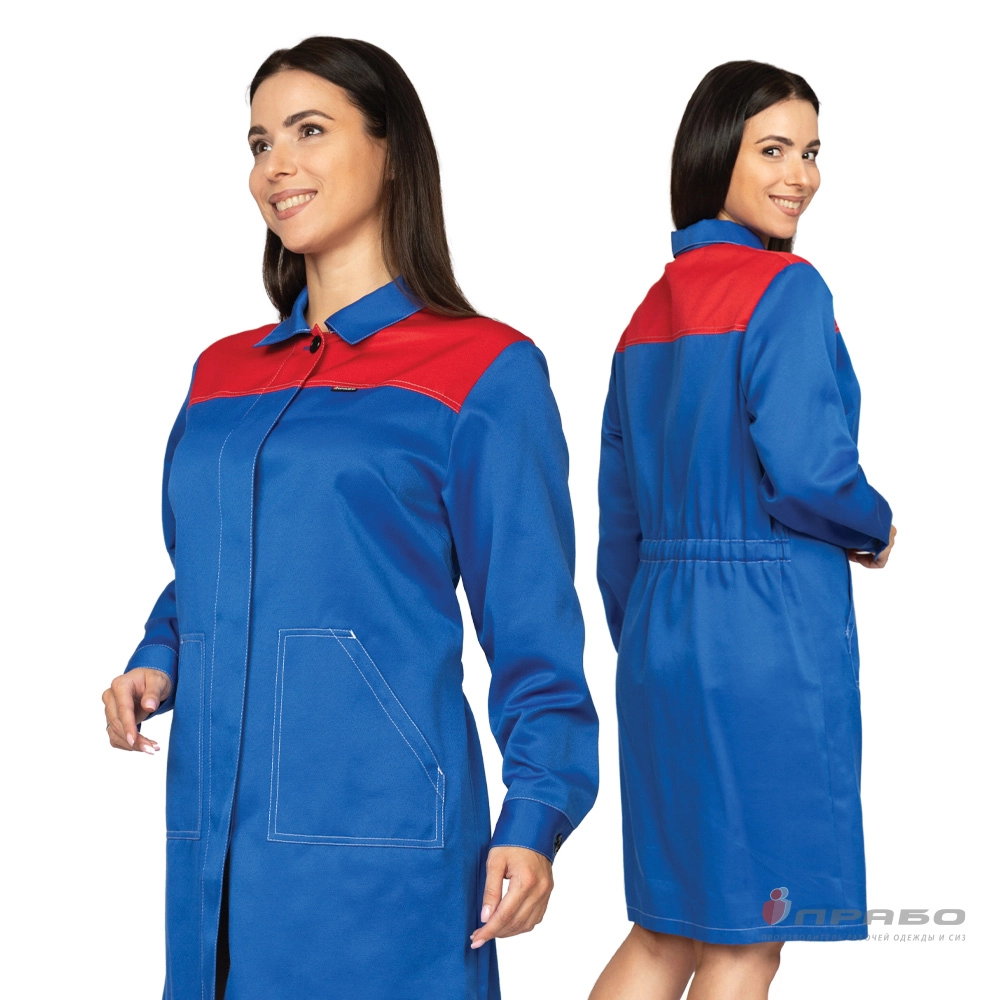 Халат женский "Пантеон" василёк/красный из облегченной ткани