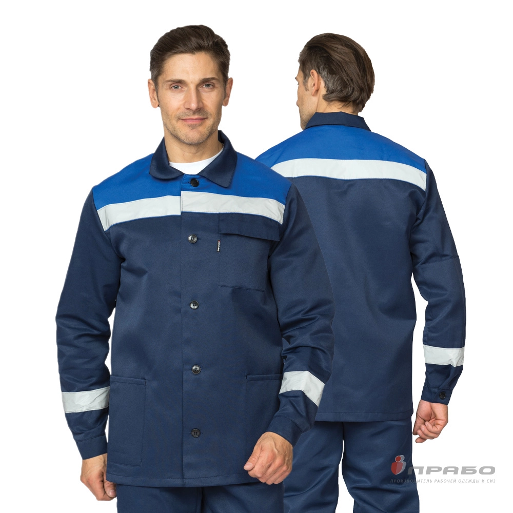 Костюм мужской летний "Стандарт 1 СОП" тёмно-синий/василёк (куртка и брюки)