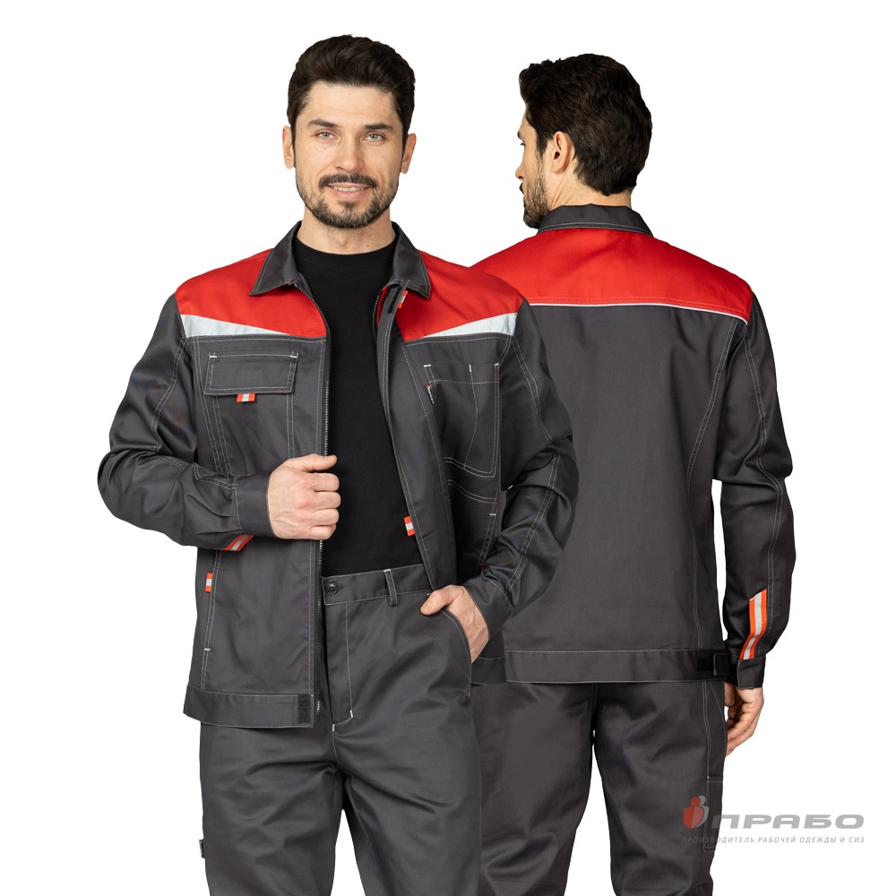Костюм мужской "Профессионал 1" тёмно-серый/красный (куртка и брюки)