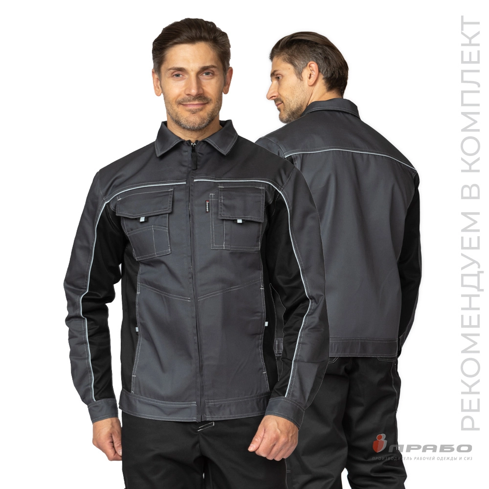 Куртка мужская летняя "Люкс" серый/чёрный/чёрный со светоотражающим кантом