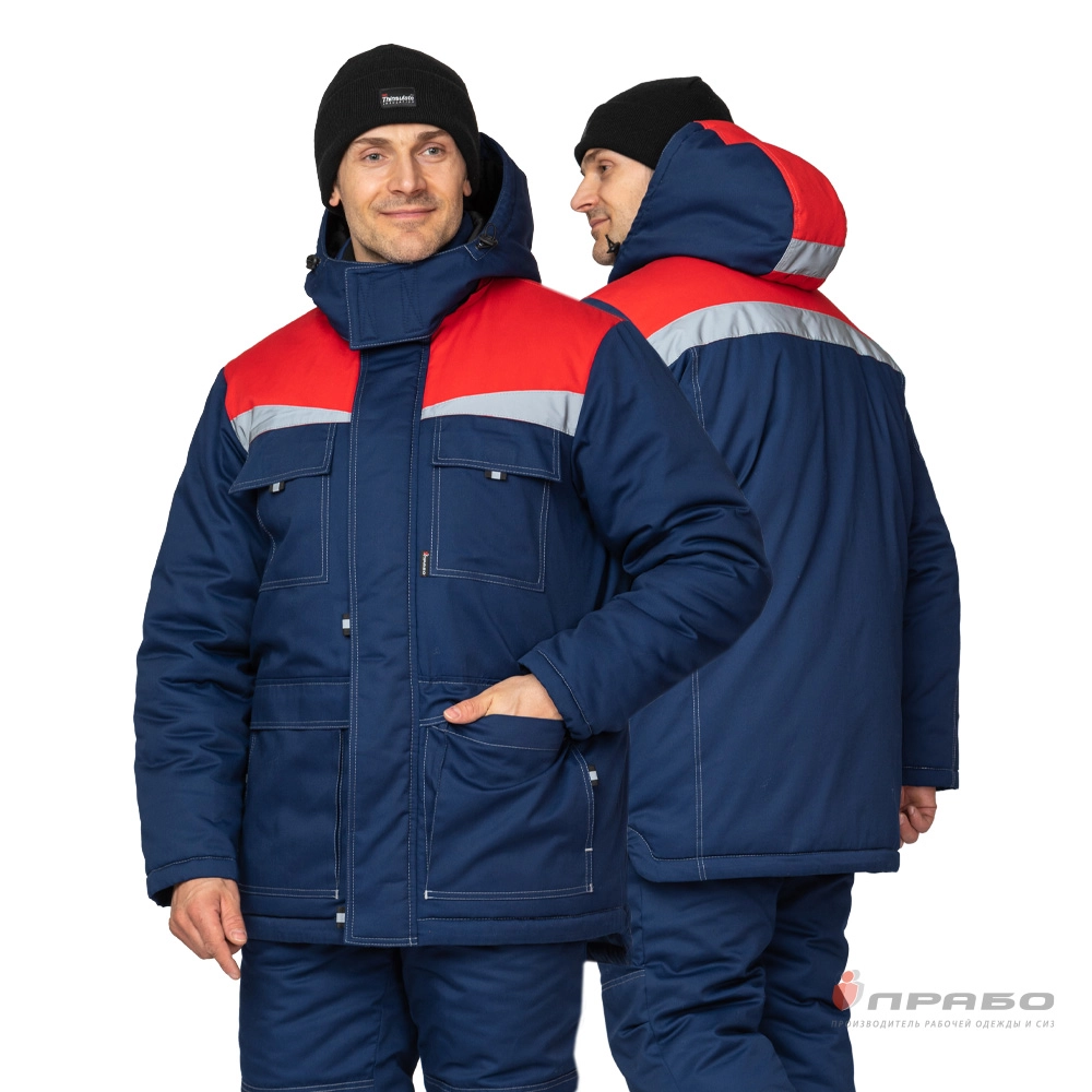 Костюм мужской утеплённый "Профессионал 2" тёмно-синий/красный (куртка и полукомбинезон)
