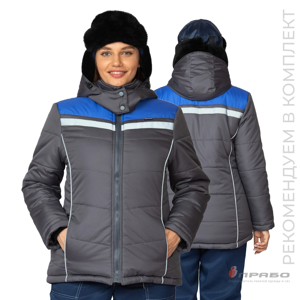 Куртка женская утеплённая "Онега-М" с трехслойным утеплителем тёмно-серая/электрик
