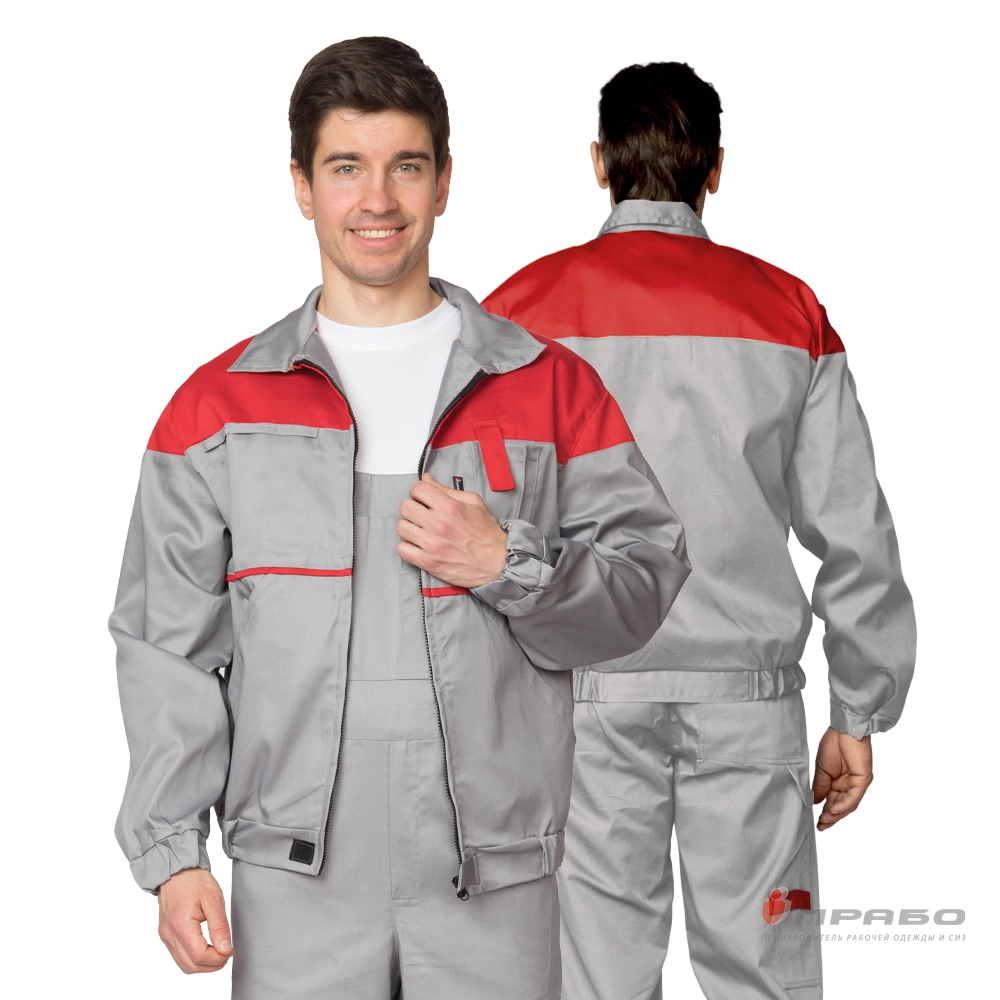 Костюм мужской летний "Гудзон" серо-красный (куртка и полукомбинезон)