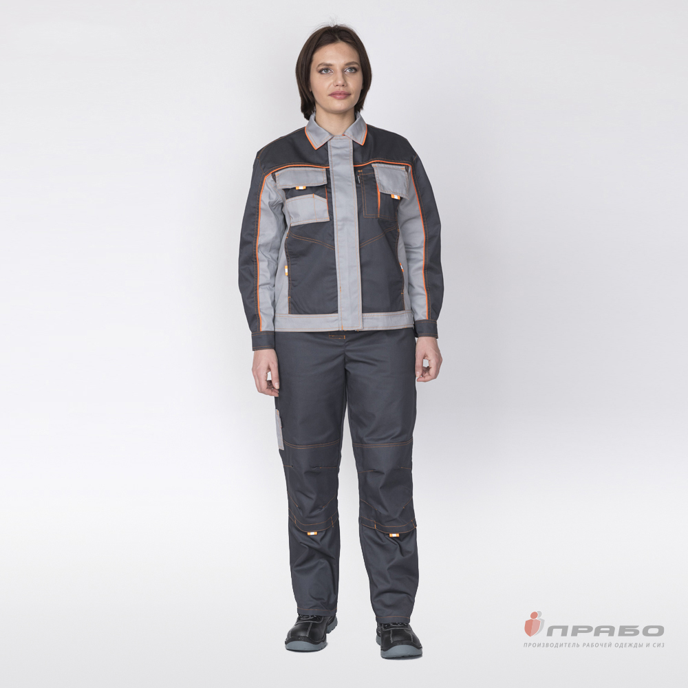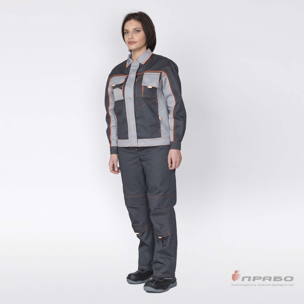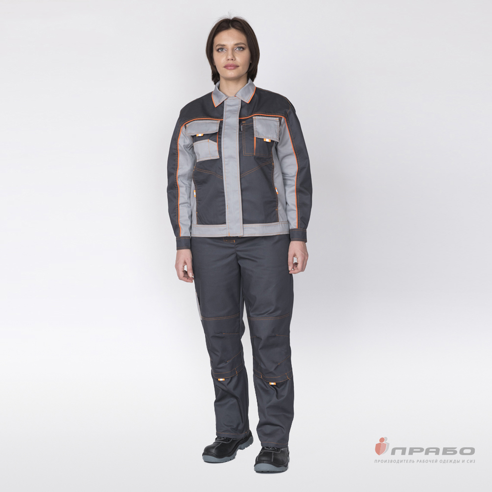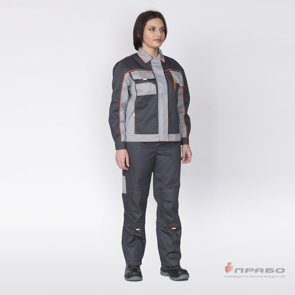 Женская спецодежда на нашем сайте — это современная, практичная и функциональная одежда. Костюм женский «Бренд 1» — одна из наиболее популярных моделей каталога. Представленный цветовой вариант — темно-серая модель в комбинации со светлым оттенком серого цвета. Костюм влагостойкий, он устойчив к истиранию, к общепроизводственным загрязнениям и нетоксичным растворам. Укороченная комфортная куртка имеет аккуратный воротничок, благодаря которому изделие выглядит опрятно.