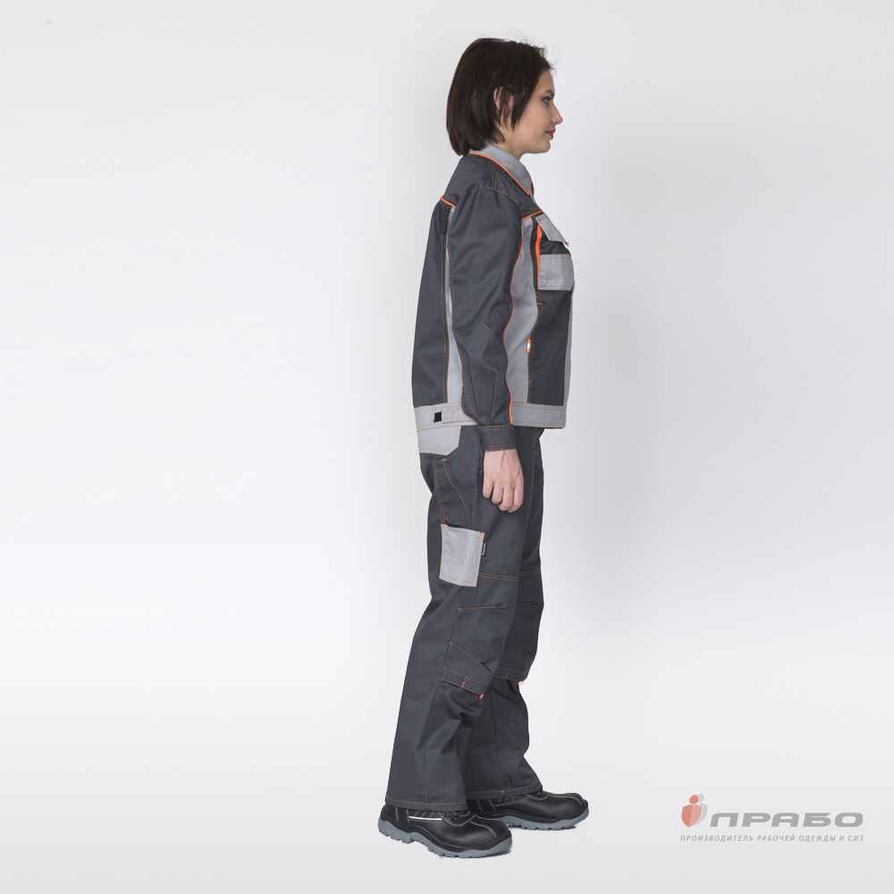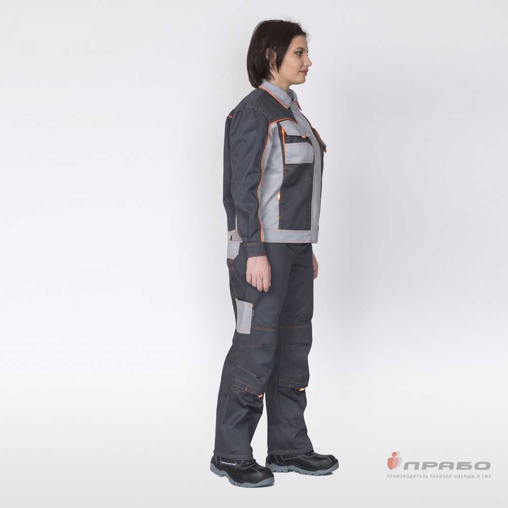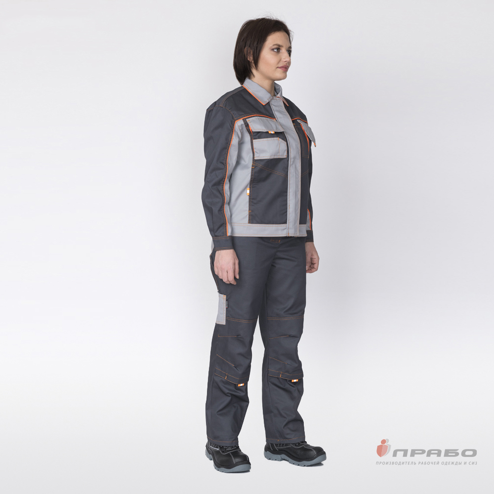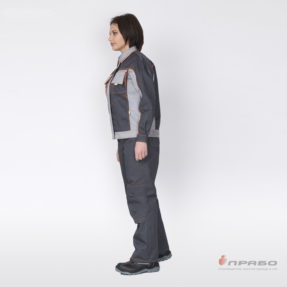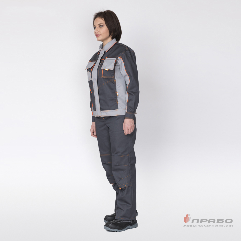 Женская спецодежда на нашем сайте — это современная, практичная и функциональная одежда. Костюм женский «Бренд 1» — одна из наиболее популярных моделей каталога. Представленный цветовой вариант — темно-серая модель в комбинации со светлым оттенком серого цвета. Костюм влагостойкий, он устойчив к истиранию, к общепроизводственным загрязнениям и нетоксичным растворам. Укороченная комфортная куртка имеет аккуратный воротничок, благодаря которому изделие выглядит опрятно.