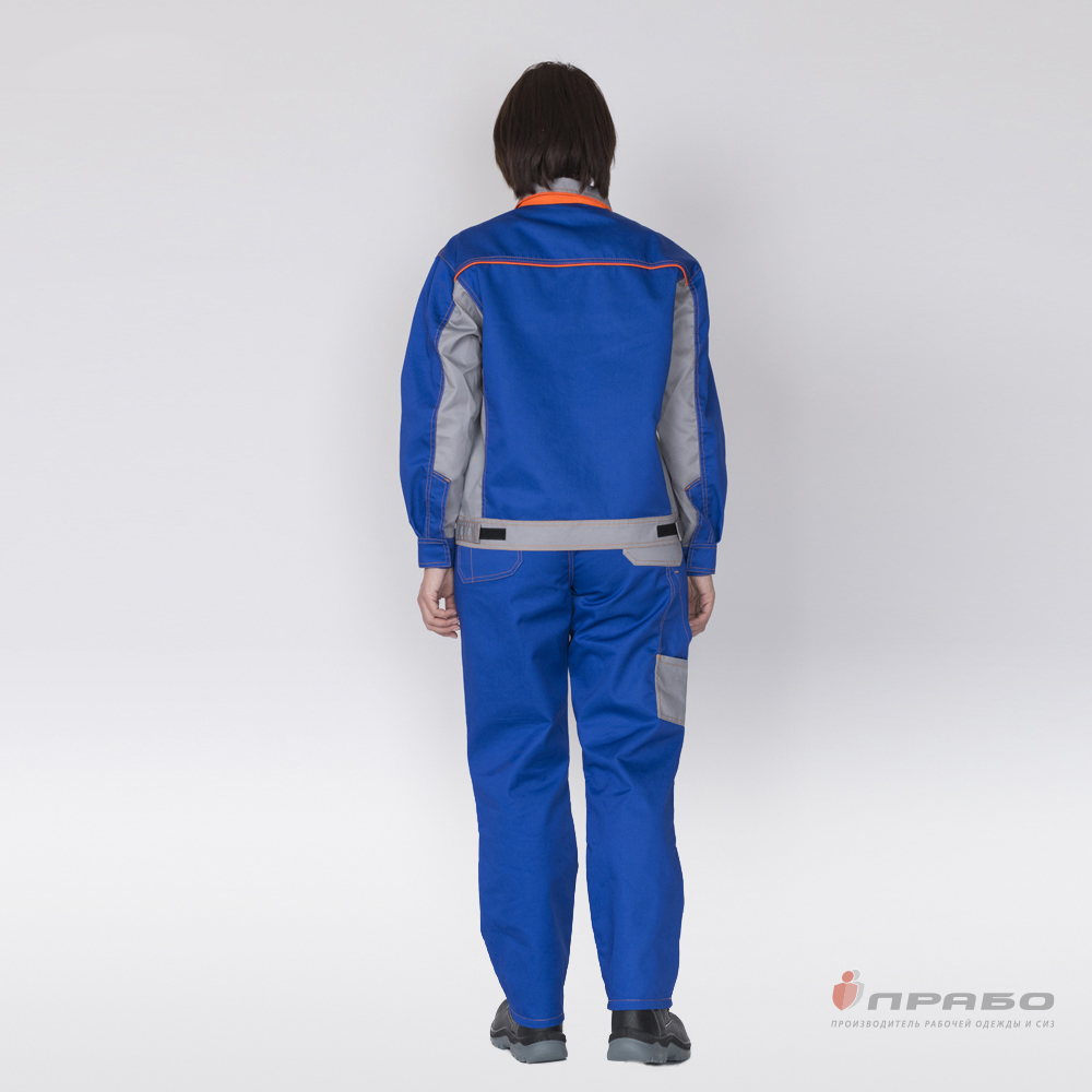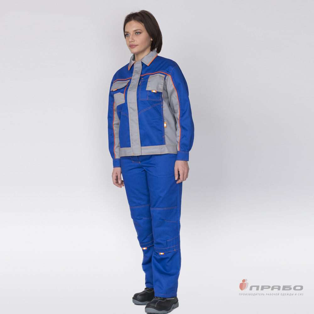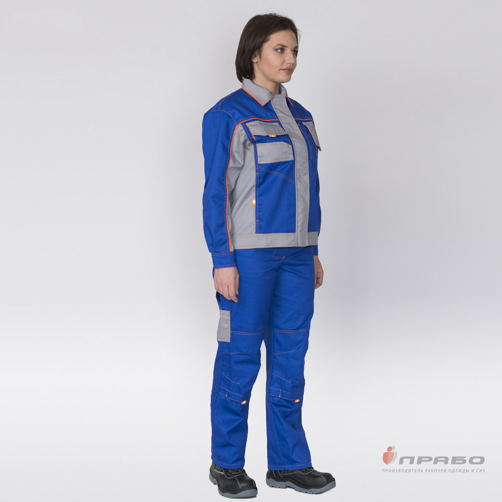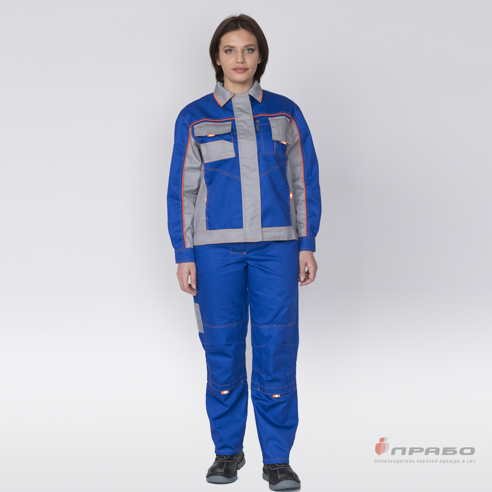 Костюм женский "Бренд 1" василёк/серый из смесовой ткани (куртка и брюки)