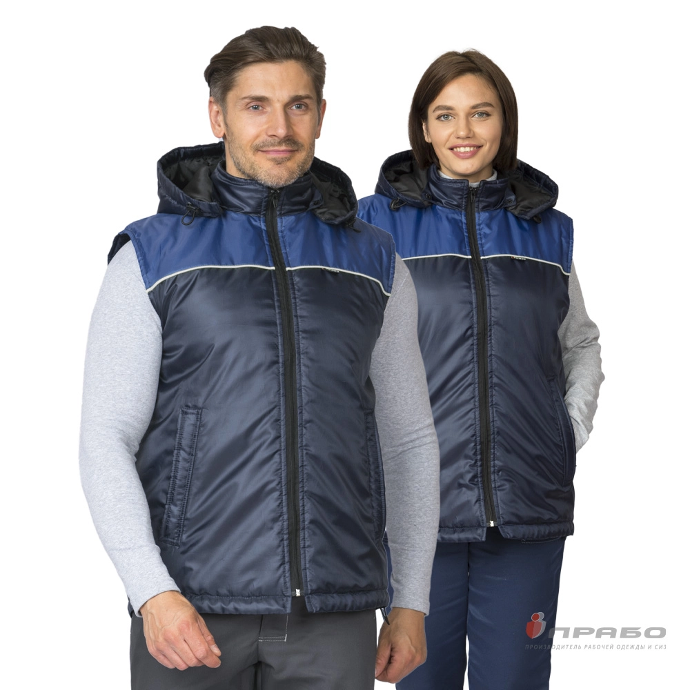 Жилет утеплённый "Сура" тёмно-синий/василёк/серебряный