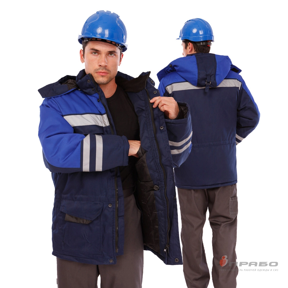 Мужская рабочая утеплённая куртка «Зима» со светоотражающими элементами подходит для работы на различных производствах, а также в коммунальной, строительной и других сферах. Модель относится ко 2-му классу защиты — III климатическому поясу (регион II).