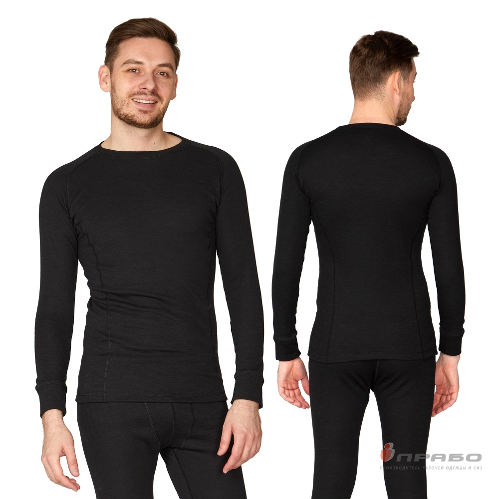 Термобельё мужское х/б двухслойное чёрное (фуфайка и кальсоны), 260 г/м²