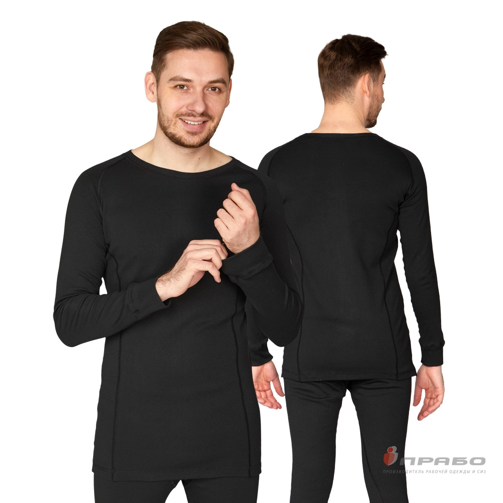 Термобельё мужское х/б однослойное чёрное (фуфайка и кальсоны), 270 г/м²