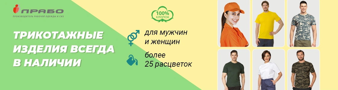 Купить трикотажные изделия можно оптом или в розницу (от 1 штуки) на сайте интернет-магазина спецодежды «ПРАБО» в Москве.