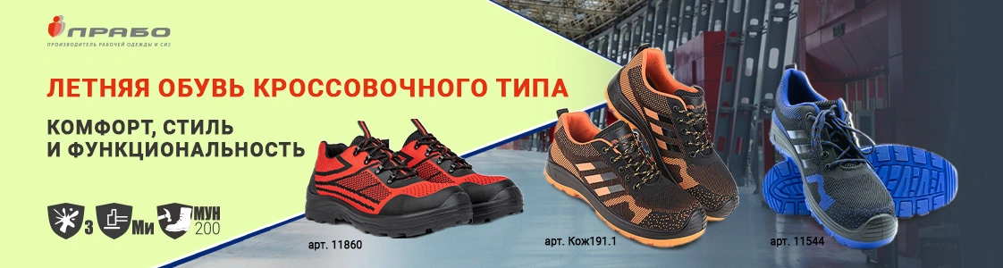 В ассортименте компании «ПРАБО» представлена летняя спецобувь кроссовочного типа. Это специальная рабочая обувь, которая сочетает спортивный стиль и защитные элементы.