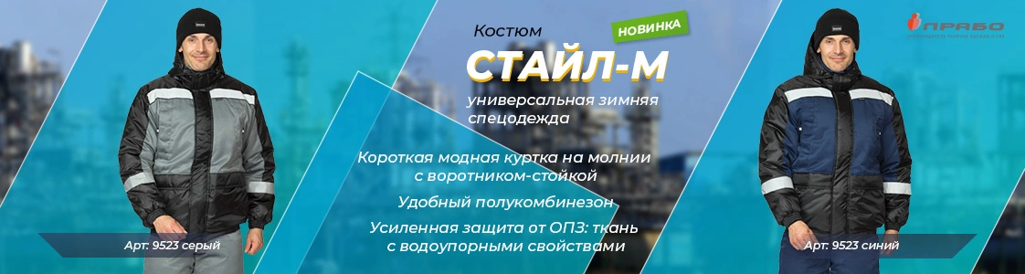 Производитель «Прабо» обновил линейку зимней мужской спецодежды и предлагает в ассортименте обновлённый костюм Стайл. Костюм мужской утеплённый Стайл-М обеспечит защиту от общепроизводственных загрязнений, это отличный вариант спецодежды для работников холодных цехов, холодильных камер, для складских рабочих занятых на улице, работников ЖКХ, водителей спецтехники и других.