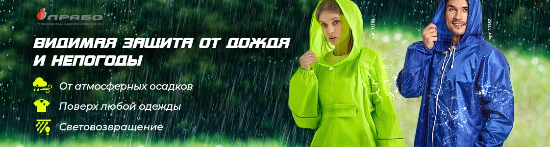 Выбирая влагозащитную одежду, обратите внимание на качество материала и фурнитуры. Водоотталкивающие пропитки и плотные швы помогут избежать промокания в самых сырых условиях, а световозвращающее покрытие спасёт не только от дождя, но и сделает человека заметным в условиях ограниченной видимости. Удобный крой и размерный ряд изделий, позволят одевать плащ или куртку поверх рабочего или делового костюма. А однотонная расцветка даст возможность брендировать изделия под корпоративный стиль вашей компании.