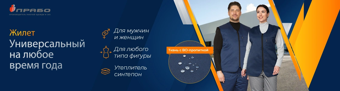 В каталоге интернет-магазина «ПРАБО» есть модель, которая востребована круглый год. Это модель жилета тёмно-синего цвета «Универсал». Этот жилет подходит для мужчин и женщин. Он утеплённый, его можно носить в качестве верхней одежды, а можно — в качестве дополнительного утепляющего слоя под куртку или плащ.
